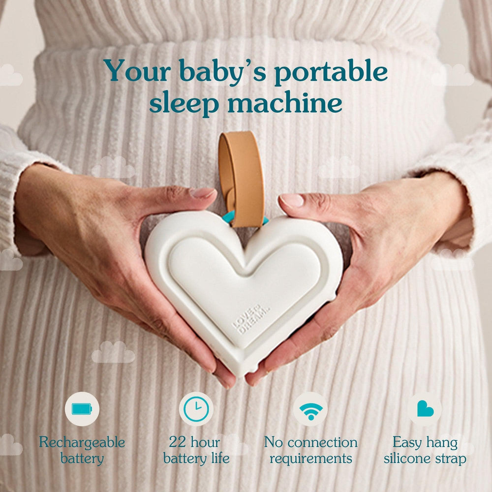 The Love To Dream Sleep Machine is an all-in-one baby sleep aid designed to create a calming and consistent sleep environment. Featuring nine soothing sounds, cry detection, a personalized recording function, and a baby-friendly night light, it helps babies fall asleep faster and stay asleep longer. With Bluetooth connectivity and a USB-C rechargeable battery lasting up to 22 hours, this sleep machine supports healthy sleep habits at home and on the go.