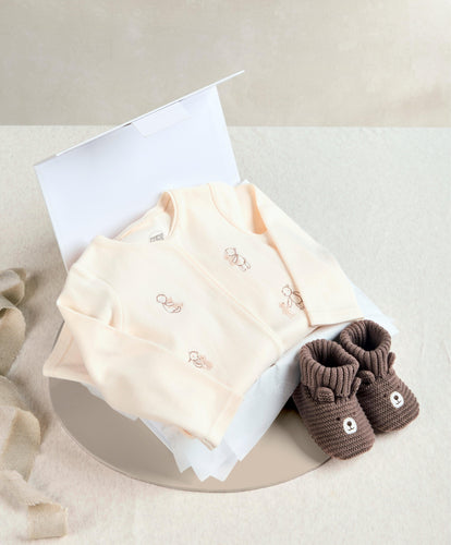 0-3m Embroidered Teddy Bear Romper Baby Gift Box - Medium