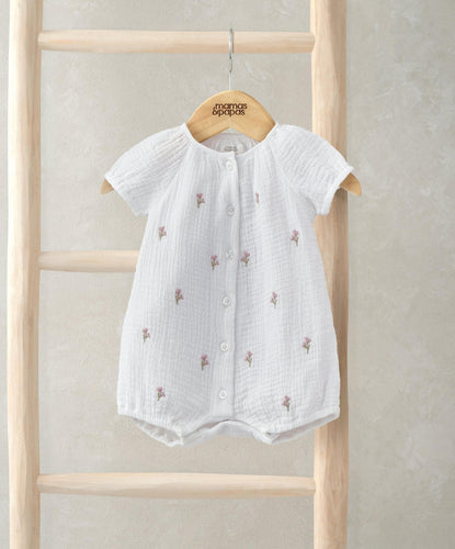 Mamas & Papas Rompers Embroidered Scallop Collar Romper with Frill Trim