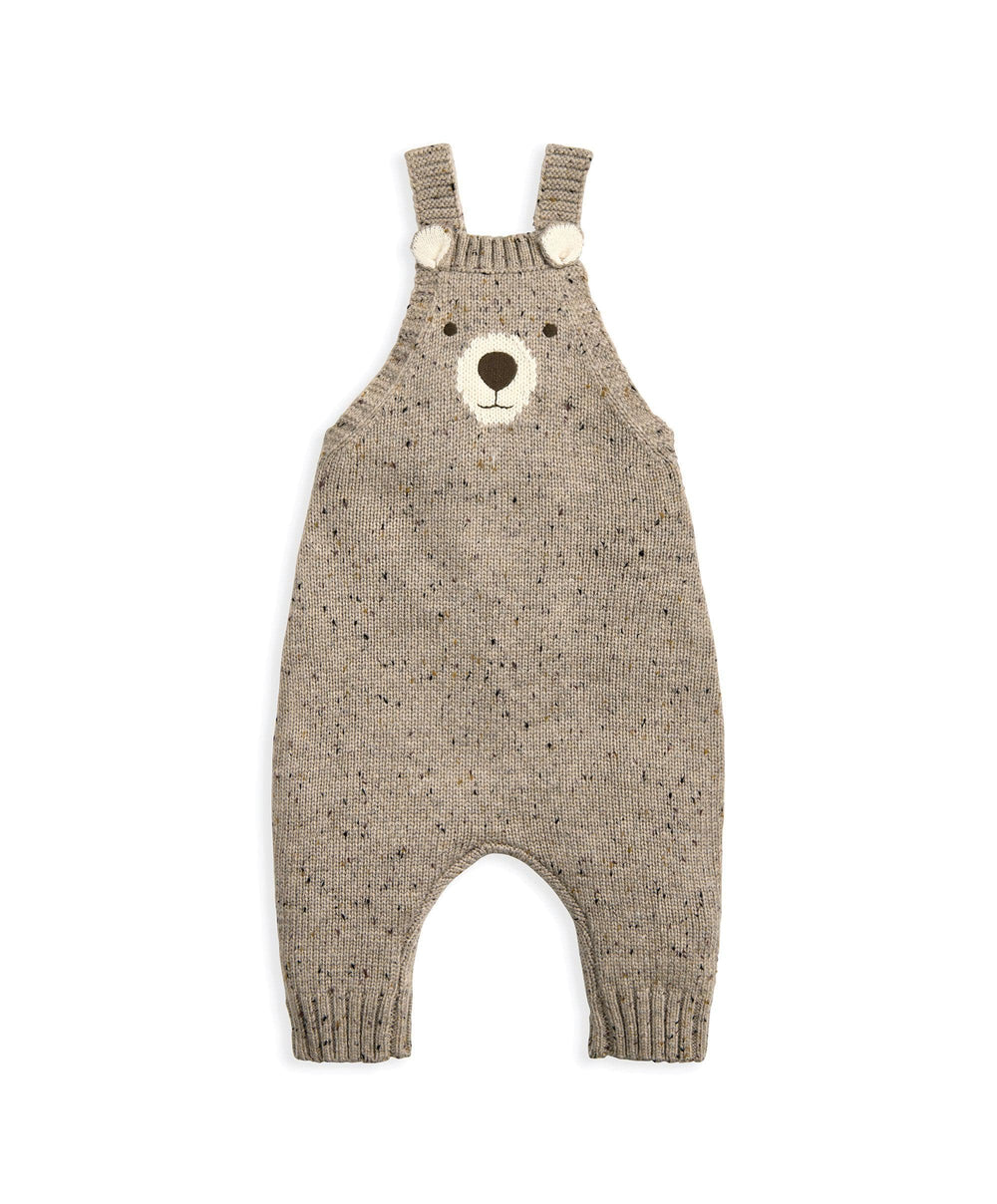 The cutest outfit set for little ones, featuring knitted bear detailed dungarees and coordinating bodysuit.