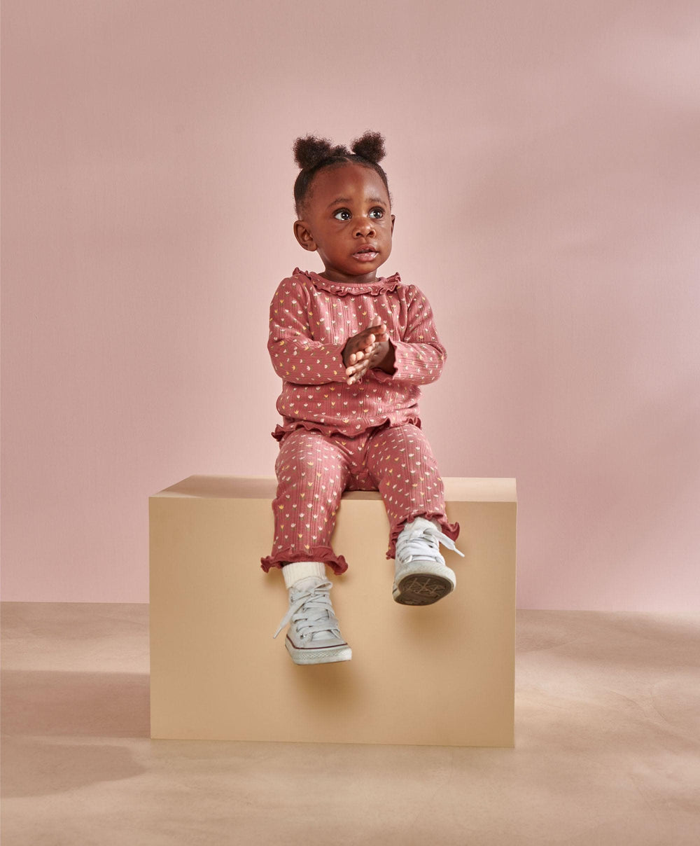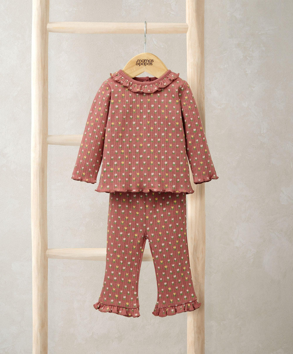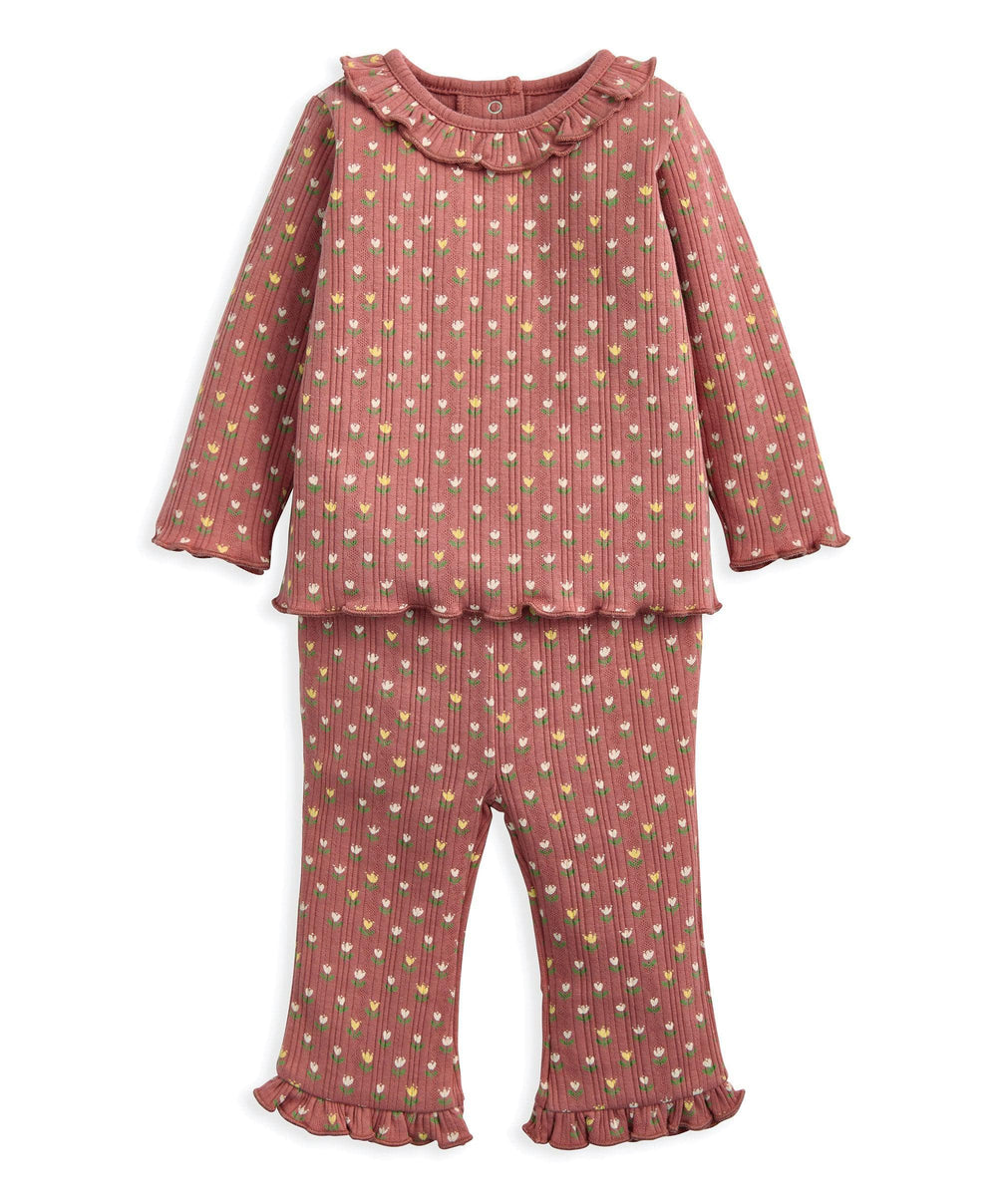 - Matching bottoms with elasticated waistband, patch pocket and frill-edge cuffs