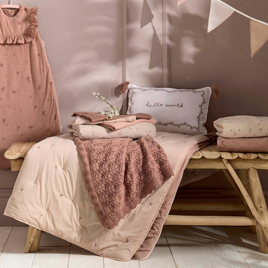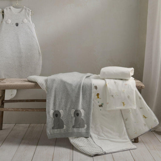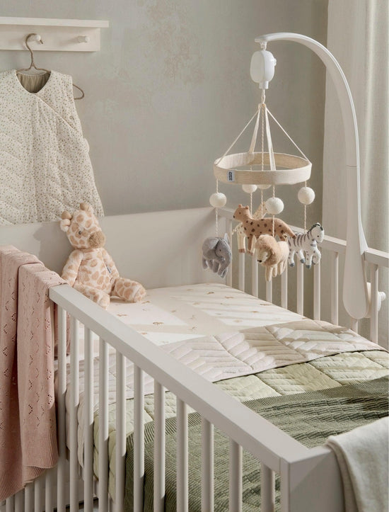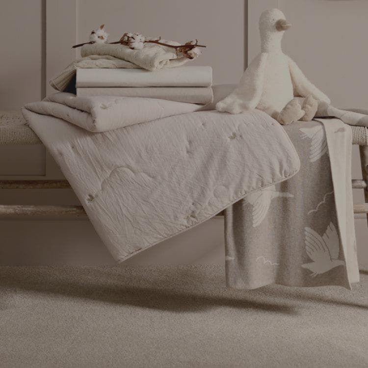 Explore our cosy nursery interior ranges. From theme to colour palette, pattern, and characters, the DNA of each range is entirely distinctive. Made from the very best fabrics, our in-house designed collections of baby bedding, blankets and accessories allow you to add that all-important finishing touch. Whether you choose an entire collection for a ready-curated look or pick and mix for a more unique take, shop our cot mobiles, cushions and nursery wall art to help you style your nursery your way.