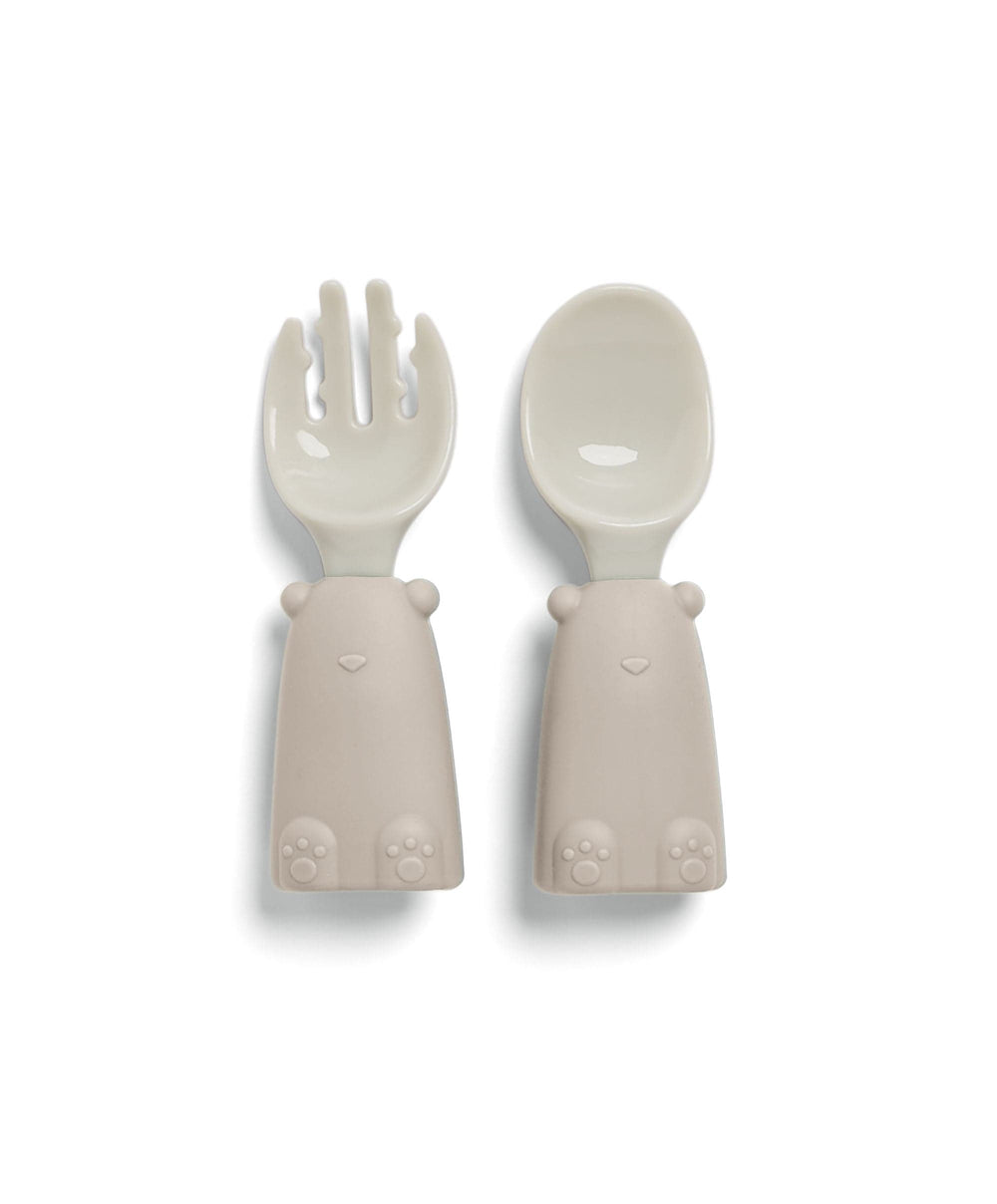 - Chunky short ended fork and spoon for developing grip and hand to mouth skills