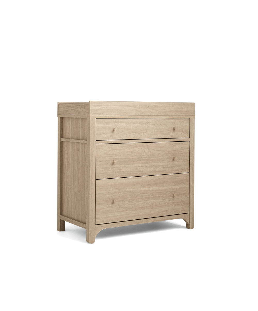 Designed to adapt as your little one grows, our Barton dresser changer is a clever combination of style and practicality. Featuring a removable changing top, it seamlessly transforms from a baby-changing station into a stylish dresser, lasting for years to come. With soft-close drawers in varying sizes, it’s perfect for organising everything from newborn essentials to growing wardrobes. Finished in warm natural oak with a subtle design and gently curved feet, it effortlessly complements any nursery, no matter your style.