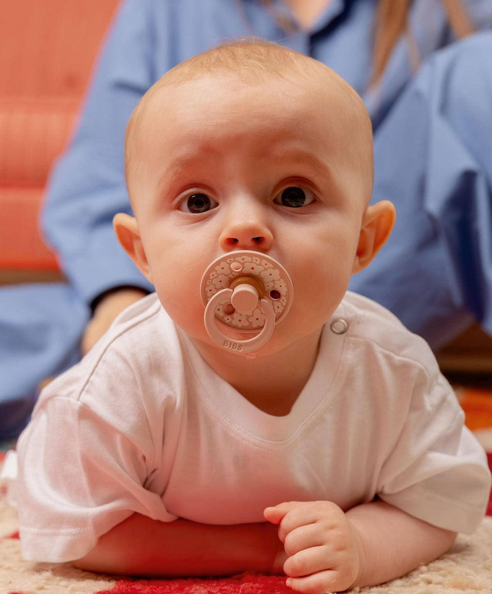 BIBS Colour is the original BIBS pacifier and has been on the market for over 40 years. It has the signature round BIBS shield with three vent holes and round BIBS engraved handle ring. The shield is carefully designed to curve away from the sensitive and delicate skin around the baby’s mouth to prevent moisture build-up. The shield is made of food-grade material.