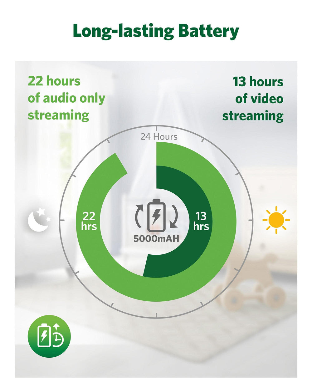 The monitor includes a temperature & humidity sensor to monitor nursery temperature accurately, ensuring your baby's comfort with visible levels on the screen.