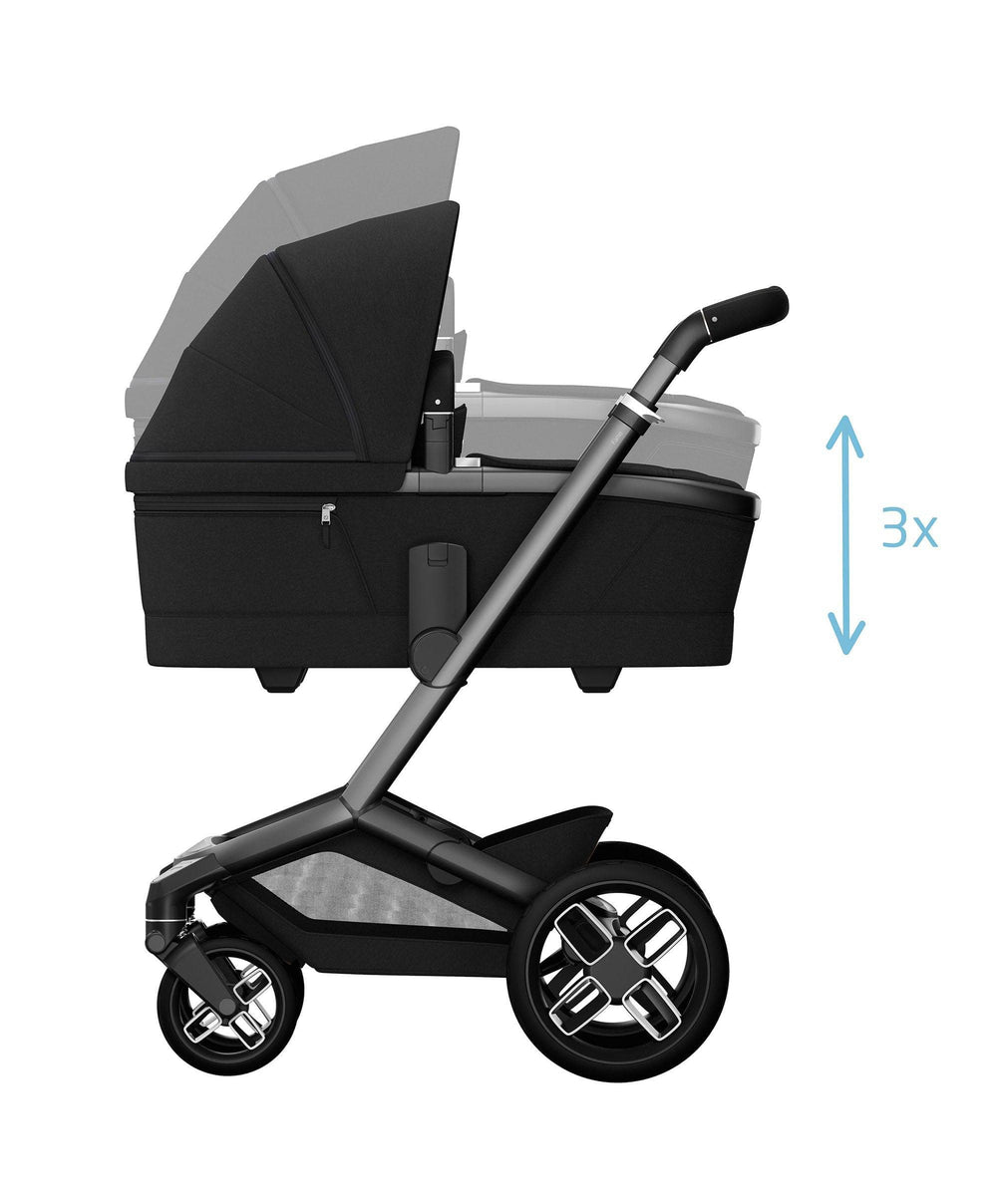 - Designed for every size parent. The height adjustable carrycot ensures you never get backache while placing your baby in and out.