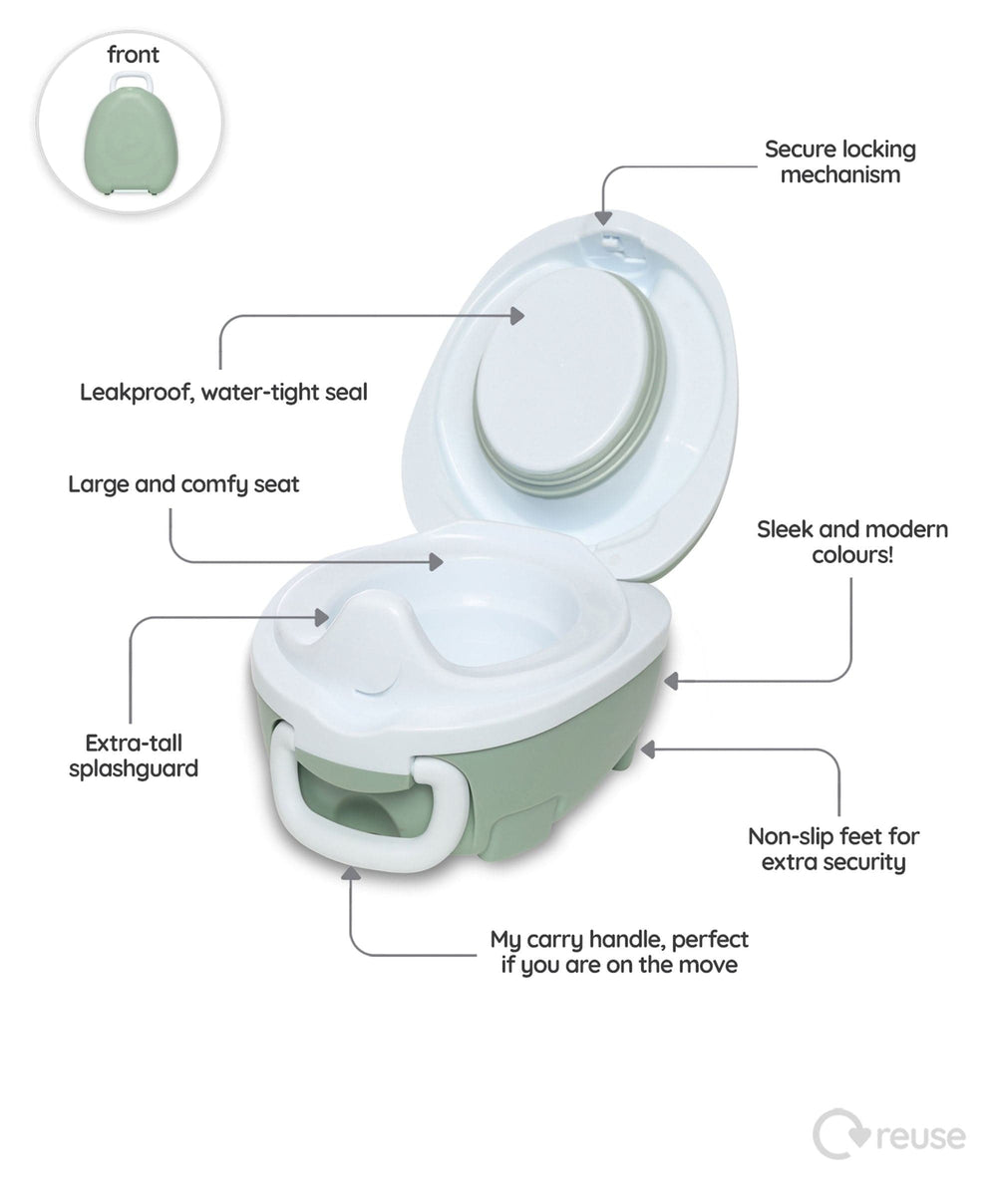 - Unique Carry Handle to encourage consistency. Potty training anywhere!