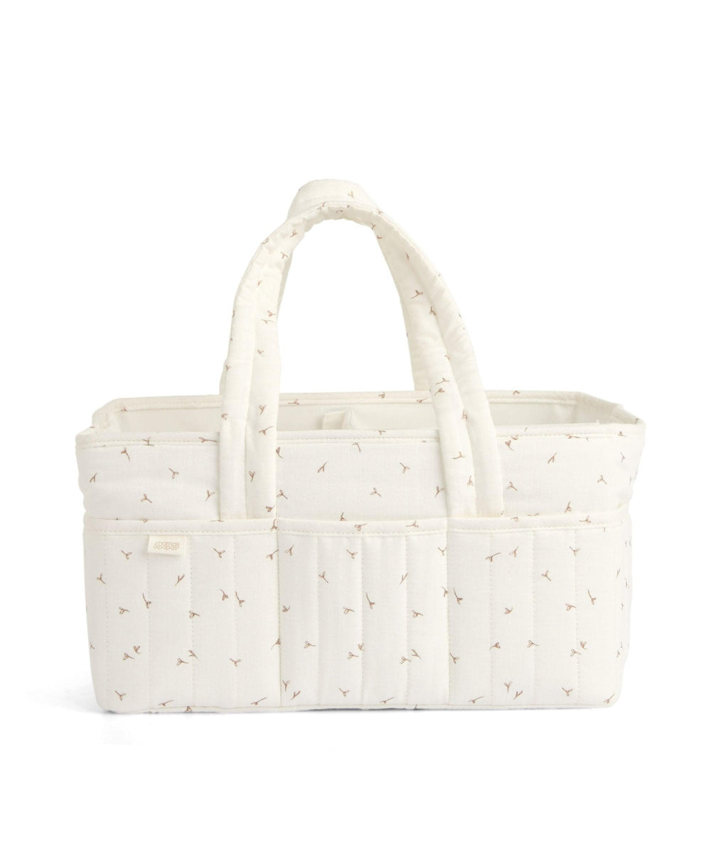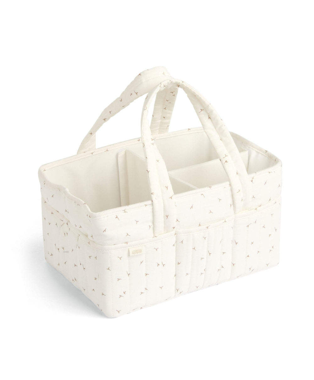A stylish place to store all your changing essentials. Plenty of space to store, thanks to three inner compartments with removeable inserts and outer pockets for smaller items. Large handles allow you to move it easily around the house and folds down flat when not in use. Made from a natural soft organic cotton waffle fabric in a beautiful Seedling print that coordinates with Mamas & Papas Welcome to the World Seedling collection.